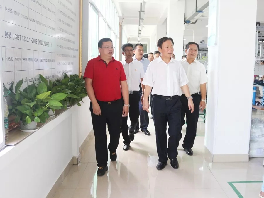 徐紹川來到百裕集團生產(chǎn)中心,先后參觀考察了黨建展廳、黨群文化活動中心、生產(chǎn)車間、校服文化展示中心等地,集團董事長許曲煌、百裕實業(yè)黨支部曾晏來書記等陪同考察。