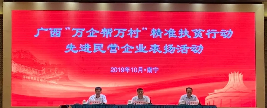 10月17日上午,自治區(qū)工商聯(lián)、扶貧辦舉辦的廣西“萬企幫萬村”精準(zhǔn)扶貧行動(dòng)先進(jìn)民營(yíng)企業(yè)表揚(yáng)活動(dòng)在南寧隆重舉行。百裕集團(tuán):梧州百裕實(shí)業(yè)有限公司及河池分公司均榮獲廣西“萬企幫萬村”精準(zhǔn)扶貧行動(dòng)“先進(jìn)民營(yíng)企業(yè)”榮譽(yù)稱號(hào)。