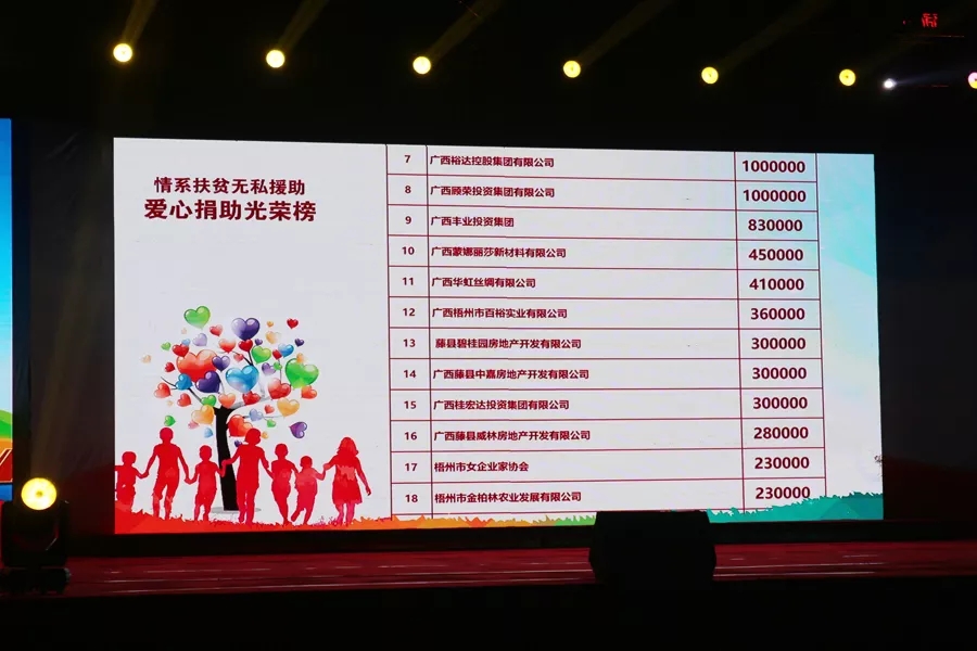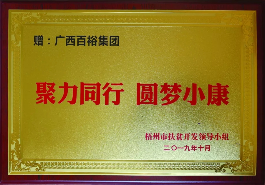 為進(jìn)一步動(dòng)員各民營(yíng)企業(yè)、社會(huì)組織、社會(huì)各界愛心人士積極參與到扶貧攻堅(jiān)的壯麗事業(yè)中來,形成“人人皆愿為、人人皆可為、人人皆能為”的社會(huì)扶貧參與機(jī)制,集中社會(huì)各方力量高質(zhì)量打贏打好脫貧攻堅(jiān)戰(zhàn),在10月17日我國(guó)第6個(gè)“扶貧日”來臨之際,10月16日晚梧州市2019年國(guó)家扶貧日“提高脫貧質(zhì)量 鞏固脫貧成果”主題公益晚會(huì)上,百裕集團(tuán)多年來積極助力脫貧攻堅(jiān)戰(zhàn)役和社會(huì)公益活動(dòng)工作成績(jī)顯著得到表彰。