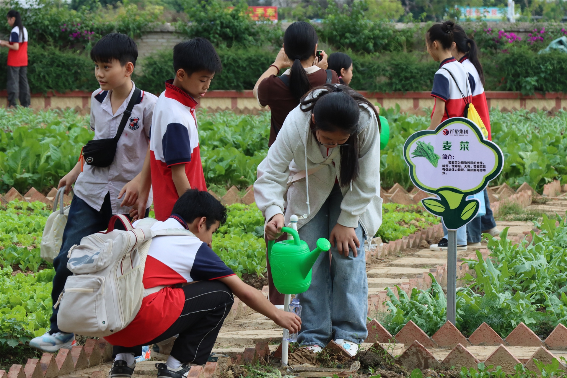 跟隨工作人員的步伐,孩子們來(lái)到農(nóng)耕園里,在這里他們將體驗(yàn)應(yīng)季果蔬農(nóng)耕生產(chǎn)活動(dòng)。孩子們認(rèn)真聆聽著工作人員介紹農(nóng)耕工具和瓜果蔬菜的外貌特征以及種植方法,通過(guò)親自體驗(yàn)翻地、撒種、施肥等農(nóng)事活動(dòng),不僅提高了孩子的動(dòng)手實(shí)踐能力,鍛煉了身體,也更直觀、更深入地了解了傳統(tǒng)農(nóng)耕文化,深刻體會(huì)到了農(nóng)耕種植的不易。