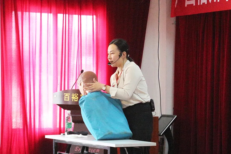講座上,百裕實(shí)業(yè)總經(jīng)理曾晏來(lái)表示:“公共安全職業(yè)健康專題講座,是“安全生產(chǎn)月”系列活動(dòng)之一。目前,公司積極開(kāi)展形式多樣、內(nèi)容豐富的 “安全生產(chǎn)月”系列活動(dòng),希望通過(guò)這次活動(dòng),進(jìn)一步增強(qiáng)員工們的自我保護(hù)、現(xiàn)場(chǎng)救護(hù)和自我保健能力 ,最大限度降低突發(fā)性傷害事件造成的危害,養(yǎng)成良好的健康生活習(xí)慣,提高員工職業(yè)健康意識(shí),增強(qiáng)企業(yè)職業(yè)健康管理。本次培訓(xùn)是比較規(guī)范的一些救護(hù)方法,請(qǐng)同事們認(rèn)真聽(tīng),細(xì)心觀察老師的操作方法。”