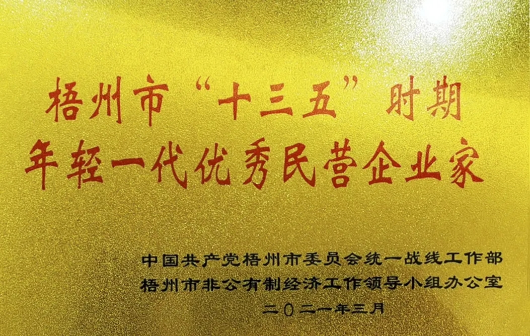 百裕集團(tuán)董事長(zhǎng)許曲煌榮獲“梧州市‘十三五’時(shí)期年輕一代優(yōu)秀民營(yíng)企業(yè)家”稱號(hào)。