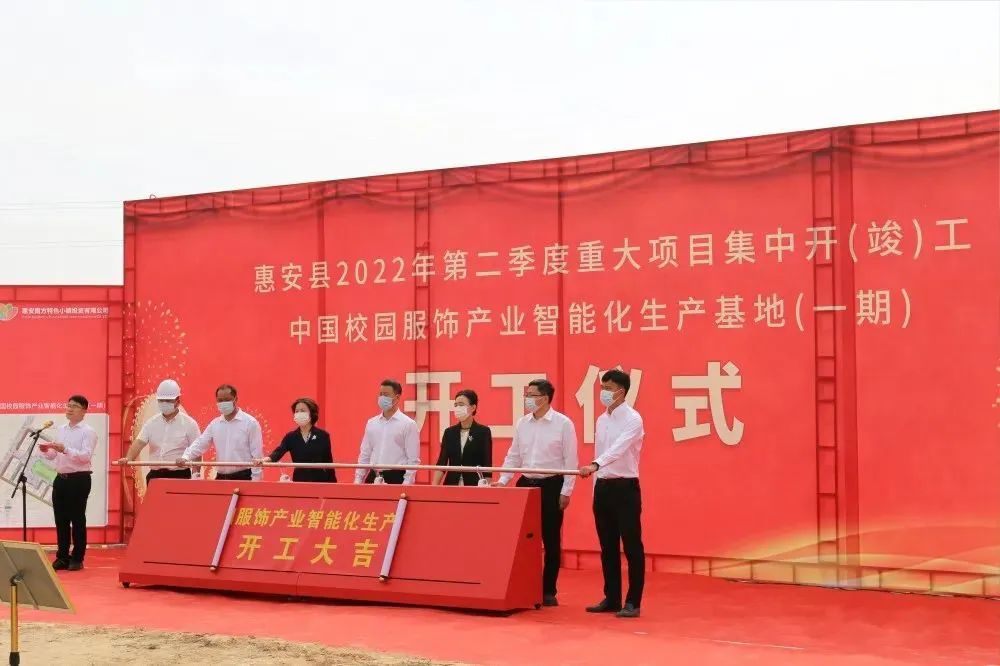 4月13日上午9時(shí)許,城南工業(yè)區(qū)(中國(guó)校園服飾產(chǎn)業(yè)基地)內(nèi),惠安縣隆重舉行中國(guó)校園服飾產(chǎn)業(yè)智能化生產(chǎn)基地一期項(xiàng)目開(kāi)工儀式。中共惠安縣委書(shū)記王春雷,縣政協(xié)主席許貞麗,縣委副書(shū)記黃麗瓊,縣委常委、常務(wù)副縣長(zhǎng)蔡旭萌、螺陽(yáng)鎮(zhèn)黨委王海演書(shū)記、鎮(zhèn)長(zhǎng)林少杰和項(xiàng)目業(yè)主代表辛景文等出席開(kāi)工儀式并共同為項(xiàng)目開(kāi)工推桿啟動(dòng)。副縣長(zhǎng)郭惠卿主持開(kāi)工儀式并介紹項(xiàng)目情況。