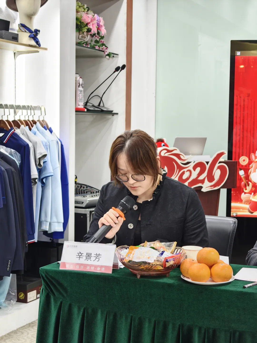 大會伊始,全體參會人員在國歌中起立,拉開序幕。主持人介紹領(lǐng)導(dǎo),感謝員工一年付出,問候領(lǐng)導(dǎo),現(xiàn)場氣氛熱烈。會上,董事長許曲煌致辭指出,2025年是“十四五”收官、集團(tuán)守正創(chuàng)新關(guān)鍵年,各環(huán)節(jié)凝聚員工智慧汗水。以精益管理和多元業(yè)態(tài)發(fā)展,在服裝主業(yè)實(shí)現(xiàn)從傳統(tǒng)制造到高端“智造”跨越,團(tuán)隊(duì)建設(shè)提升了協(xié)作效率和員工能力。展望2026年,是“十五五”開局、智能與實(shí)體融合攻堅(jiān)年,集團(tuán)將搶抓機(jī)遇,推動AI賦能全鏈條,深耕創(chuàng)新,提升主業(yè)。