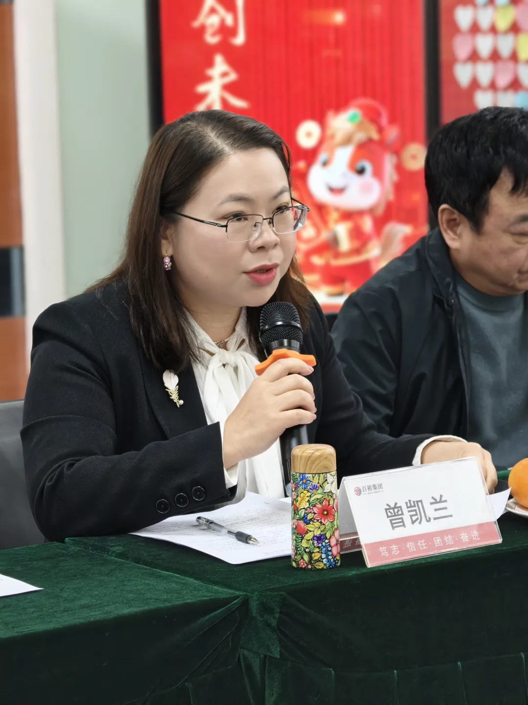 表彰結(jié)束,新一屆黨支部書記鐘海鳳表態(tài),將履職盡責(zé)做好黨支部工作。接著,總經(jīng)理曾晏來回顧公司過去成就與問題,強(qiáng)調(diào)成績不易,未來任重道遠(yuǎn),員工要凝心聚力促發(fā)展。