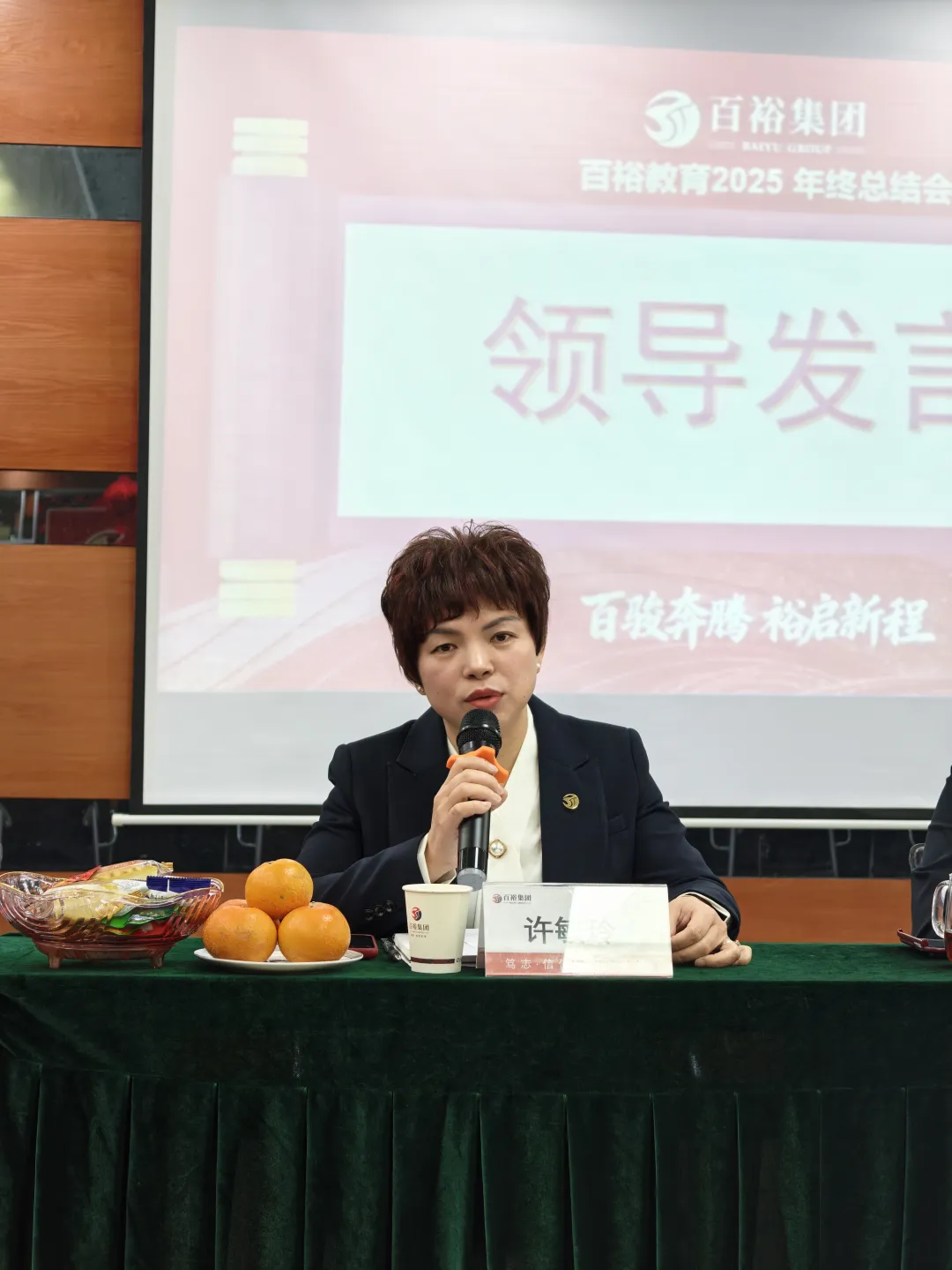 許曲煌董事長系統(tǒng)回顧了2025年百裕集團(tuán)在穩(wěn)經(jīng)營、強(qiáng)創(chuàng)新、拓布局等方面取得的扎實(shí)成果,充分肯定全體同仁在激烈市場競爭中展現(xiàn)的韌性、在技術(shù)創(chuàng)新與數(shù)字化轉(zhuǎn)型中實(shí)現(xiàn)的突破、在研學(xué)產(chǎn)業(yè)與全球化布局中邁出的堅(jiān)定步伐,以及在標(biāo)準(zhǔn)引領(lǐng)與社會責(zé)任履行中體現(xiàn)的擔(dān)當(dāng)。面向2026年,董事長強(qiáng)調(diào)必須清醒認(rèn)識當(dāng)前市場化競爭、技術(shù)融合、運(yùn)營體系等方面存在的挑戰(zhàn),并提出以研發(fā)創(chuàng)新與AI賦能、深化改革與精益管理、市場開拓與全球布局、人才興企與梯隊(duì)建設(shè)、質(zhì)量為本與嚴(yán)格管控、黨建引領(lǐng)與文化凝聚、研學(xué)產(chǎn)業(yè)與社會責(zé)任等七大核心要求為行動綱領(lǐng),號召全體百裕人凝心聚力、實(shí)干篤行,共同推動集團(tuán)實(shí)現(xiàn)“破局而立、向新而行”的高質(zhì)量發(fā)展。董事長許曲煌的發(fā)言,為集團(tuán)新一年的工作指明了前行航向,激勵全體百裕人勇毅前行。