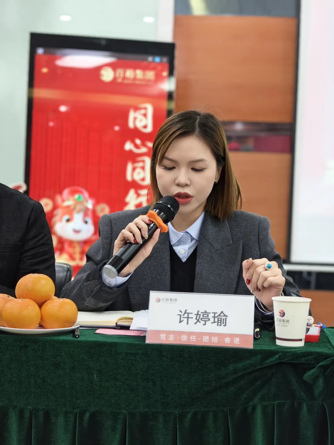 會議最后,財(cái)務(wù)中心經(jīng)理辛景芳、財(cái)務(wù)總監(jiān)羅少麟、市場總監(jiān)曾凱蘭、生產(chǎn)中心、營銷中心總經(jīng)理許敏玲、廣西海絲緣實(shí)業(yè)投資有限公司總經(jīng)理許婷瑜多位領(lǐng)導(dǎo)依次發(fā)言,深入分析年度工作成果與不足,明確未來發(fā)展方向。