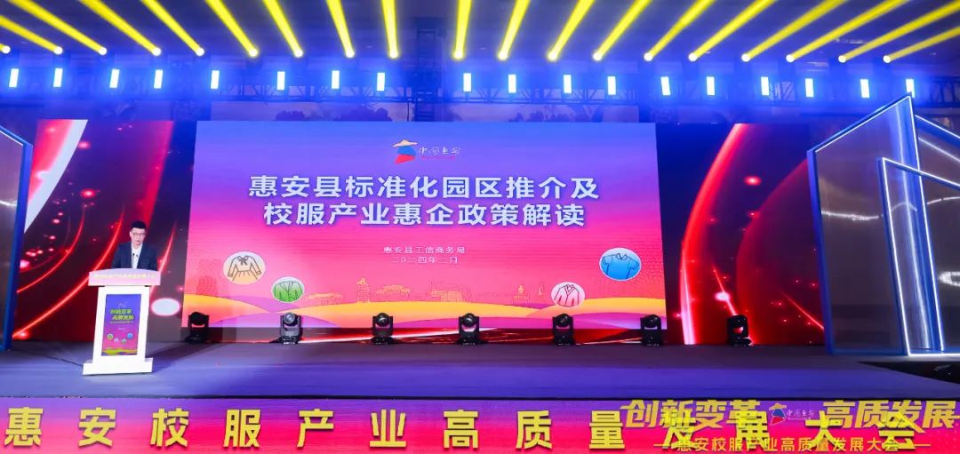 為深入貫徹習(xí)近平總書記關(guān)于支持民營企業(yè)改革發(fā)展的重要指示精神,全面落實黨中央和省市關(guān)于加快推進新型工業(yè)化工作要求,按照2024年縣委工作會議和“三看四比”活動部署,著力培育縣域重點產(chǎn)業(yè)鏈集群,全方位推動惠安校服全產(chǎn)業(yè)高質(zhì)量發(fā)展超越,2月27日下午,惠安縣召開校服產(chǎn)業(yè)高質(zhì)量發(fā)展大會。