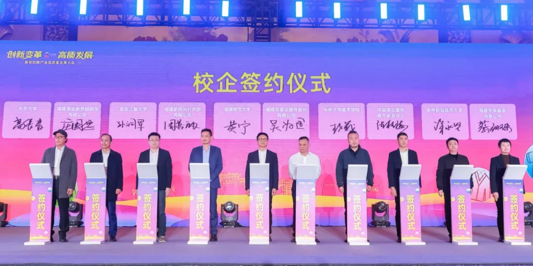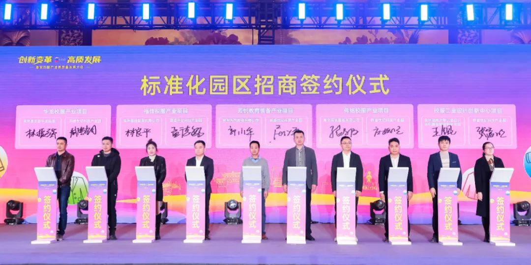本次活動在中國教育裝備行業(yè)協(xié)會、中國教育后勤協(xié)會的指導(dǎo)下,由中共惠安縣委、惠安縣人民政府主辦。現(xiàn)場啟動校服產(chǎn)業(yè)高質(zhì)量發(fā)展大會系列活動,表揚并授牌惠安縣校服行業(yè)經(jīng)濟貢獻十佳企業(yè)(2022-2023年度),舉行校服行業(yè)企業(yè)家捐贈儀式和簽約儀式;縣工信商務(wù)局推介標(biāo)準(zhǔn)化園區(qū)并解讀校服產(chǎn)業(yè)惠企政策,縣校服協(xié)會發(fā)布校服高質(zhì)量發(fā)展倡議書。此外,行業(yè)協(xié)會、院校專家、校服企業(yè)有關(guān)代表以“惠安校服產(chǎn)業(yè)高質(zhì)量發(fā)展”為主題作交流發(fā)言;現(xiàn)場通過惠安校服產(chǎn)業(yè)發(fā)展宣傳片和校服品牌展示秀展現(xiàn)惠安校服產(chǎn)業(yè)發(fā)展現(xiàn)狀。