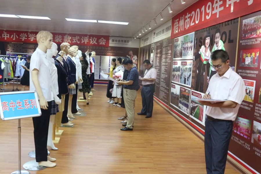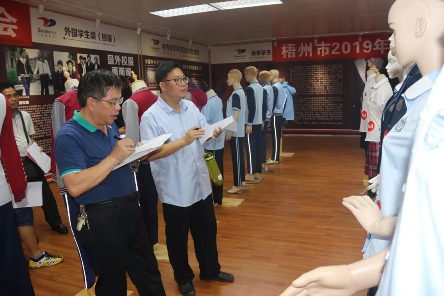 交流會(huì)后,參會(huì)代表們一同參觀了百裕集團(tuán)生產(chǎn)車間,同時(shí)對(duì)2019年梧州市中小學(xué)學(xué)生服裝款式進(jìn)行評(píng)議。