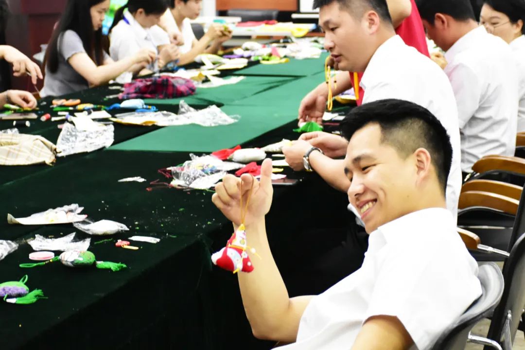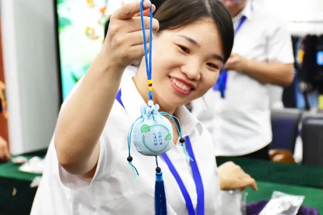 整個(gè)活動(dòng)現(xiàn)場(chǎng)祥和喜樂,大家熱情高漲。伴隨著歡聲笑語,活動(dòng)步入了尾聲,一個(gè)個(gè)精致的荷包出現(xiàn)在大家的手中,大家競(jìng)相展示成果,分享喜悅,佩戴香囊合影留念。