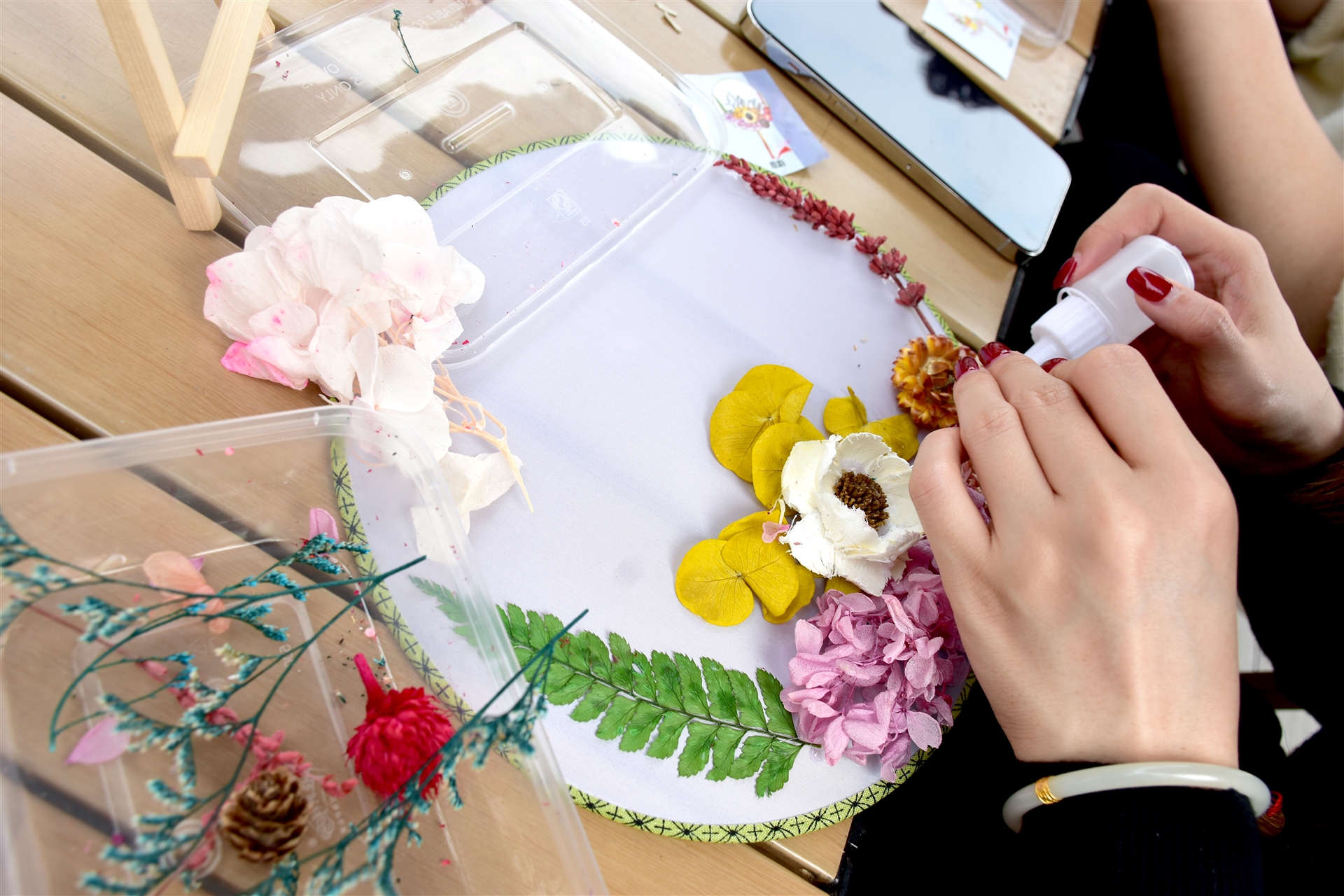 “做扇輕搖香杳杳,輕搖寶扇動香風(fēng)”。整個活動中,大家歡聲笑語不斷,每個人融合自己的創(chuàng)意、發(fā)揮想象力,用一花、一葉、一妙手在素白的扇面上,創(chuàng)作出兼具觀賞性和實用性的團(tuán)扇作品,傳承中華非遺之美。