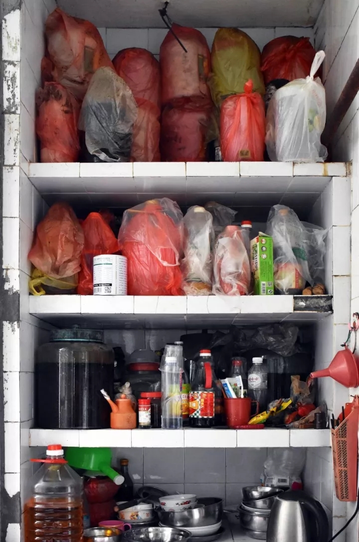 狹小的房間因一行人到來顯得更加擁擠,但多了一份溫暖與熱鬧。在面對(duì)面的交談中了解到,滕老夫婦因?yàn)檎疹櫮X癱女兒,醫(yī)藥費(fèi)負(fù)擔(dān)重,多年自己調(diào)配一些簡單的中藥,家里堆滿了瓶瓶罐罐的藥瓶。